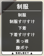 ◆場所・シーンを問わずいつでも変更可能◆ 「すけすけメニュー」は基本的に立ち絵が表示されている場面であれば、いつでもどこでも設定変更が可能です。 「あらゆる場面で、意味もなく設定を変えることが出来る」という、「多汁システム」から受け継がれたBISHOPらしい バカノリをお楽しみ頂けます!!